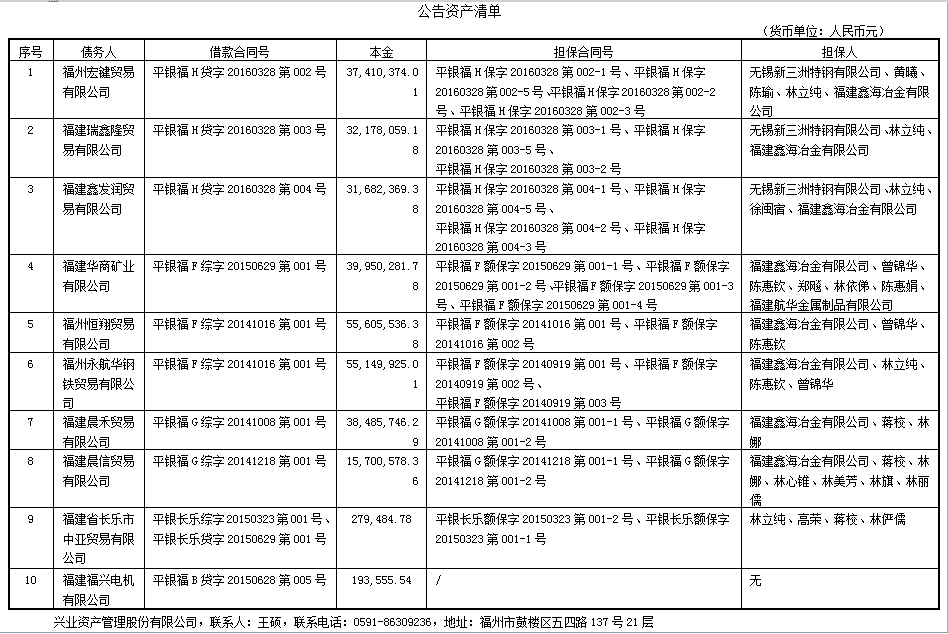 注:1.本公告清单列示截至基准日2017年11月13日的贷款本金余额,借款人和担保人应支付给万博体育3.0客户端下载资产管理股份有限公司的利息按借款合同、担保合同、补充协议及中国人民银行的有关规定计算。