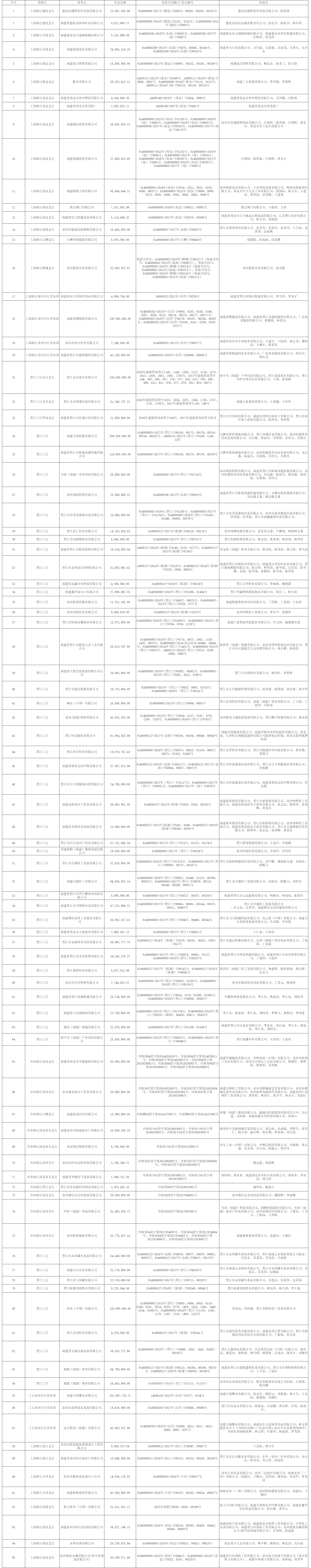 2.清单中“担保人”包括保证人、抵押人、出质人,担保人的担保范围以签署的合同等法律文件约定为准。如公告中债务人、合同编号、债权金额、担保人等信息与事实不符的,以签署的合同等法律文件约定为准。